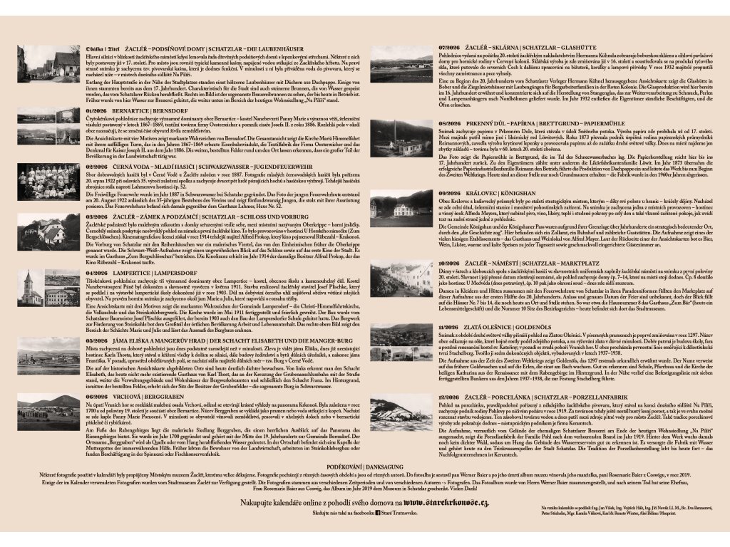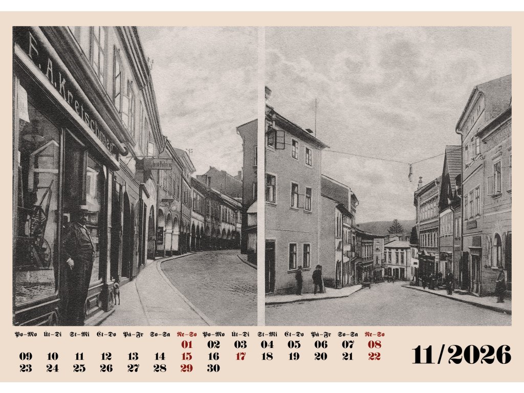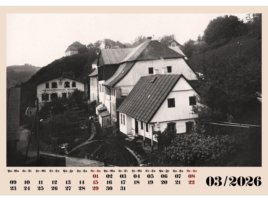 Kalendáře formátu A3 tiskneme v České republice na kvalitním křídovém papíru. Při výběru obrázků klademe důraz na to, abychom zobrazili zajímavé a často též nikdy nepublikované záběry z časů našich babiček a prababiček. Každý obrázek důkladně vyčistíme tak, aby byl prožitek z prohlížení co největší. Nepoznáte některé obrázky? Nevadí, na poslední straně naleznete popisky v češtině i němčině.