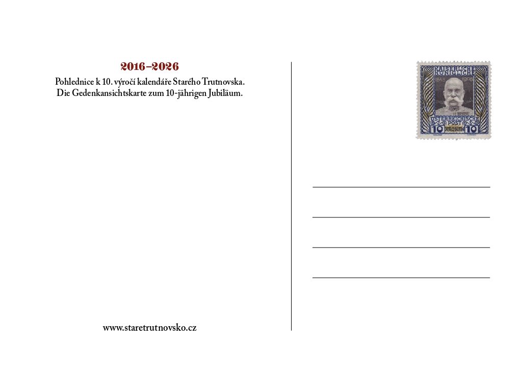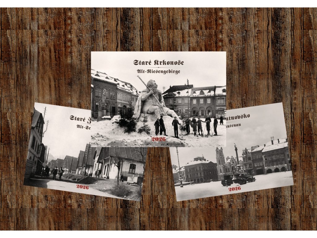 K objednávce navíc získáte jako dárek tři jubilejní pohlednice k 10. výročí kalendáře Staré Trutnovsko a také exkluzivní sadu deseti reprodukcí historických pohlednic z Krkonoš, Trutnovska a Žacléřska.